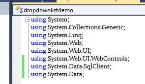 Now to get into the code. Open your ”Dropdownlist.aspx.cs“ page and add the following namespaces: