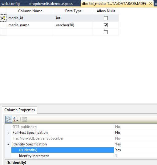 In ASP.Net we use .aspx files for design purposes, we also make a short design for our project but at a later time. You will see in the Solution Explorer two files "dropdownlist.aspx" and "dropdownlist.aspx.cs". For now assume that the ".aspx page" is for design purposes (front end, for advanced people) and the ".cs page" is used for coding purposes (back end, for advanced people).