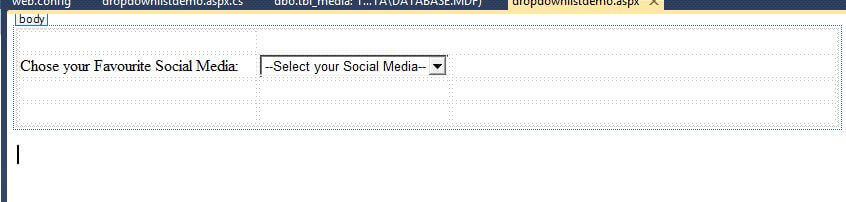 Open your Dropdownlist.aspx page for designing your application. Try to make it like the following.