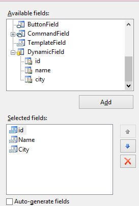 Add three Button Fields (ID, Name and City). Uncheck Auto-generate Fields.