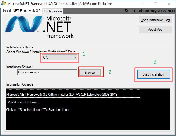 Once you download it, unzip that file to a drive other than C:, now you have to install that file by admin rights, go to the Microsoft .NET Framework 3.5 Offline Installer, Right Click and Run as Admin. You can see the following dialog box: