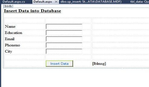 Now make some design for your application by going to insertdata_demo.aspx and try the code like this.