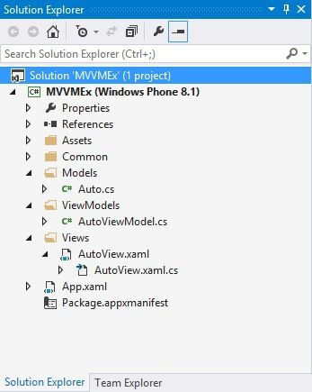 Now, similarly right-click on the “Model” folder and add a new class named “Auto.cs”. Again right-click on the “ViewModels” folder and add another class named “AutoViewModel.cs”. After all you setup, your Solution Explorer will look like in Figure 4.