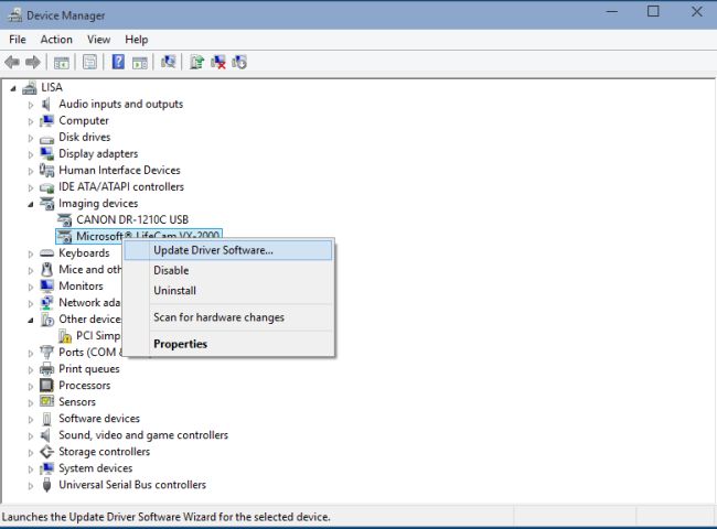 Select the device and right-click on it and Update Driver Software.