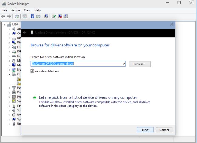 Installing drivers using Device Manager