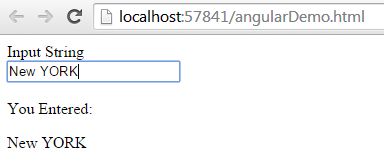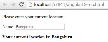 {{ location }} expression that is synchronized with ng-model="location".
