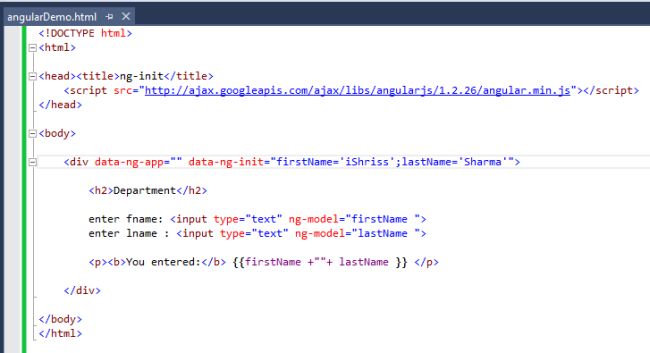 The ng-init directive evaluates the expression <tag> {{}} </tag> in the current scope. Like another directive it can be used as attributes and CSS class. The application data is initialized by