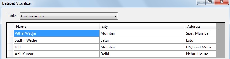 Let us see the preceding XML file in the DataSet using the DataSet Visualizer as in the following: