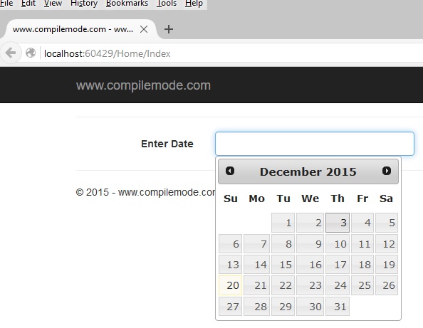 Calender control is very useful in any application and in ASP.NET there are several default server control to use but in MVC we have lot of options to use calendar control which all are client side control. In this article we will use Calender control in ASP.NET MVC with the help of jQuery UI library. So let us implement this requirement step by step,