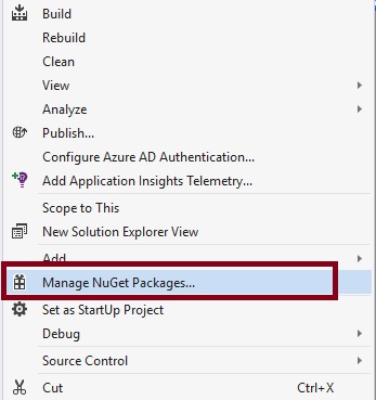 Right click on created MVC project and find Nuget Package manager option,