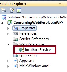 Then after adding the Web Service reference in the WPF application the Solution Explorer will look as in the following: