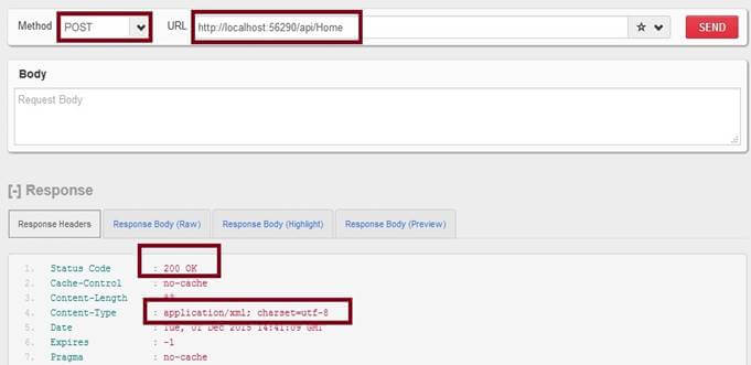 In the above image Web API REST Service, HTTP POST method returns the 200 Status code means REST service is successfully executed.