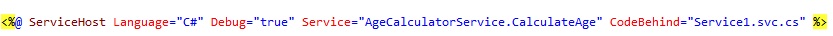 This is the service file that contains all the details, like page directive in .aspx, the .SVC stands for service that look as follows: