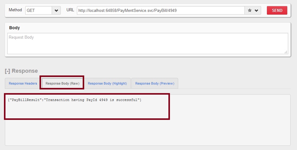 Now our service is ready. Let's test it using REST client of browser extension as: