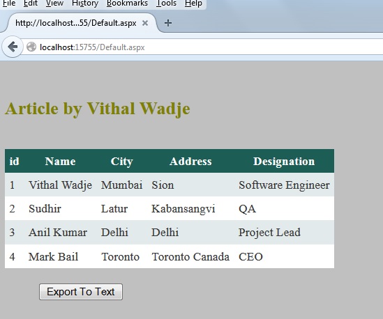 There is often a need in a project's reporting module to export Grid View records to text, so by considering that requirement I decided to write this article especially focusing on beginners and those who want to learn how to export a Grid View to text using ASP.NET C#.