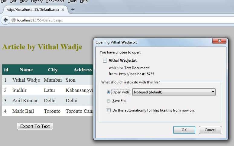 Now create the following function to export the Grid View records to Text: