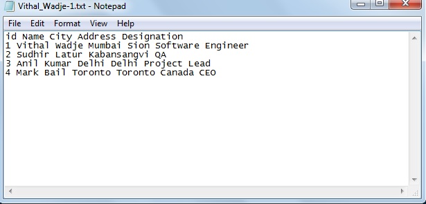 Now click the OK button, the following records are exported to the Text file: