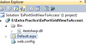 Now before creating the function to Export the grid view to Access add the reference of itextsharp.dll by right-clicking the Solution Explorer. After adding the reference the Solution Explorer will look as in the following: