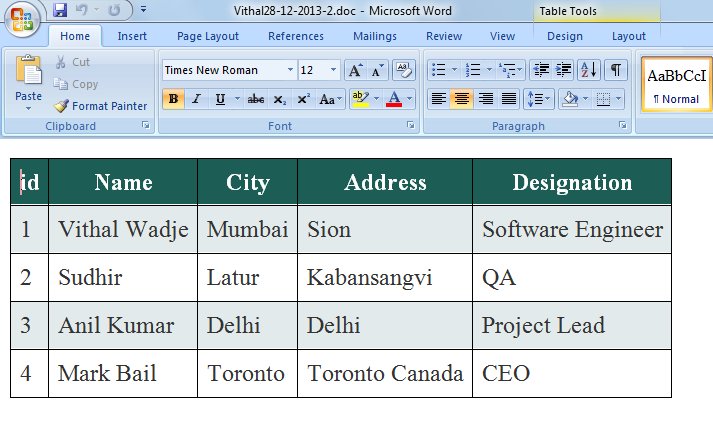 Now ,we have record to export into MS office word,let us start coding for our actual requirement..,add the VerifyRenderingInServerForm event after the page load which is required while exporting Grid view to excel,word and PDF to avoid the run time error which is occurred like as "GridView' must be placed inside a form tag with runat=server."