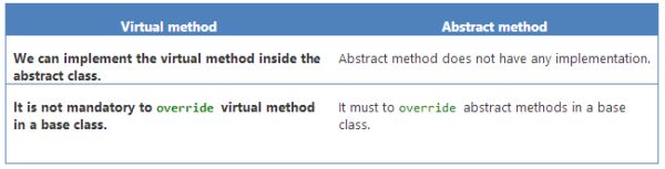 - Only those methods overriden in the derived class declared in the base class using the virtual keyword or abstract keyword.