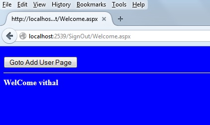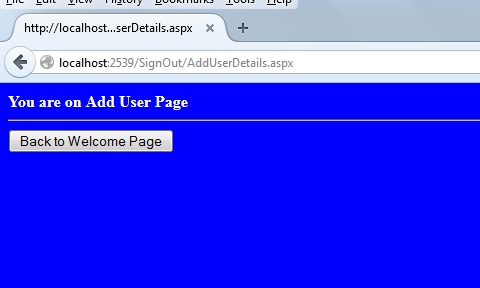 Now click on the Goto Add UserPage button. It will redirect to the AddUser.aspx page as in the following: