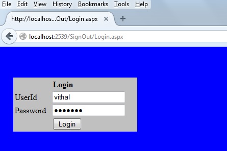 Now our application is ready for testing, so let us run the application. The following Login Page will be shown.