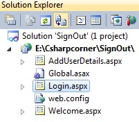 In the code above of the Global.asax file if the session is null then the page is redirected to Login.aspx. If not then it redirects to Welcome.aspx. I did this logic in the Global.asax file because the Global.asax file events are fired globally.