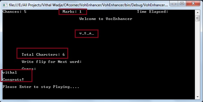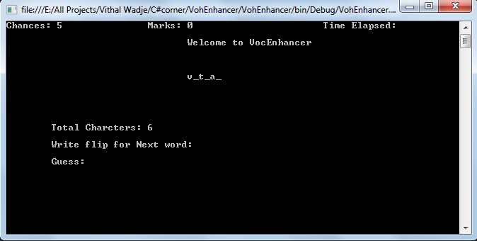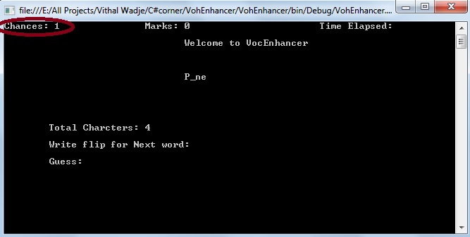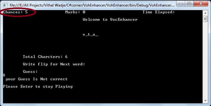If you attempt five incorrect guesses then the VocEnhancer application will exit from mode and show the following message.