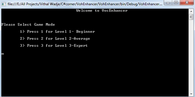 After running the VocEnhancer application the following Level selection console screen will be as: