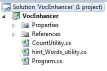 Now the VocEnhancer application Solution Explorer will look such as follows.