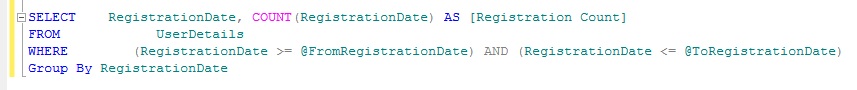 Here, I am using a simple SQL Statement that displays the Registration Date and Count Of User Registrations for that date from the User Details table.