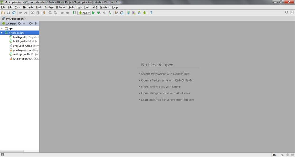 Open Android Studio and click the SDK Manager button on the toolbar. After the SDK Manager has fully loaded, close Android Studio. We are building for Android 5.1.1 (API 22) so ensure the following packages are checked under the Tools section: