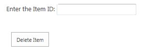 - Add an input text box to capture the id details and a button to delete an item, by id provided in the TextBox..Place the following code inside the “PlaceHolderMain” tag.