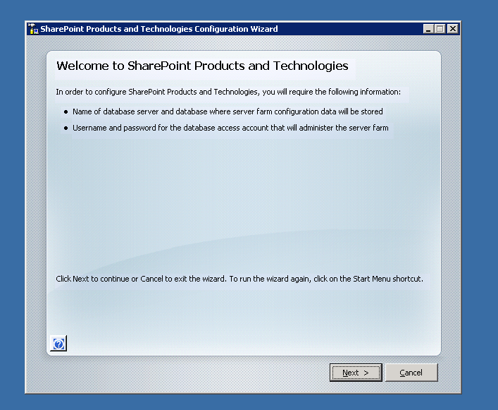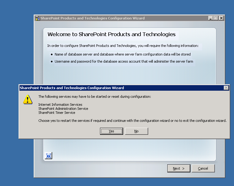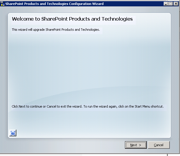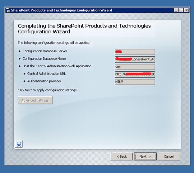 10. Click Next on the SharePoint Products and Technology Configuration Wizard.
