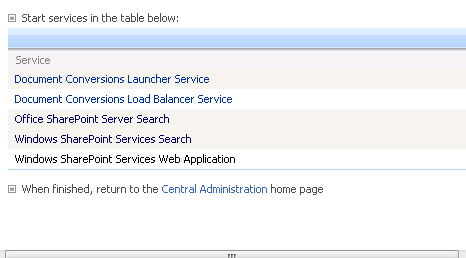 36. Click on “Windows SharePoint Services Search Service” to configure Shared Services.
