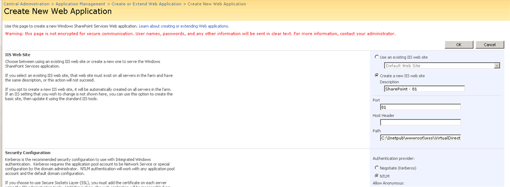 Compare the web.config files 1)Navigate to C:\Inetpub\wwwroot\wss\VirtualDirectories and