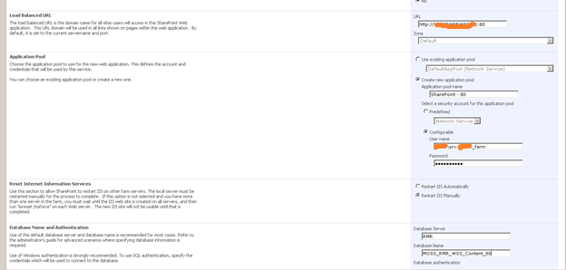 48. In The application pool settings enter the Farm account user name and word for the administrator.