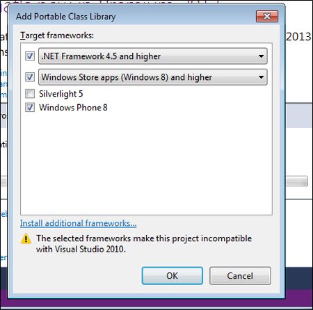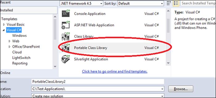 Generally a class library is a collection of classes. The common functions are written in classes and grouped together that make a single component. This component can be used in any number of applications. Earlier we had web applications and standalone applications that support the same kind of components. But in today's world we have various kinds of applications, like web applications, Windows Phone, Silverlight and a variety of applications that are totally different from each other so the traditional class library component can't support the entire range. Therefore Microsoft developed a new project type that resolved this problem. A Portable Class Library is supported by many types of applications. We need to select the application type during the creation of the project.
