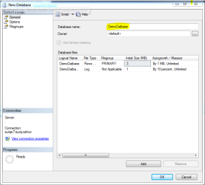 When in the first image as you see, the New Database is clicked, another window pops up as shown in the second image. Add the database name and there and it creates the database for you with a maxsize of unlimited. Then we create a Table for the storage of records.