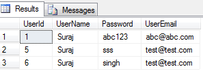 This selects all the users with the username as Suraj, usually this is made as Firstname as Suraj. Thus the result set would look as in the following: