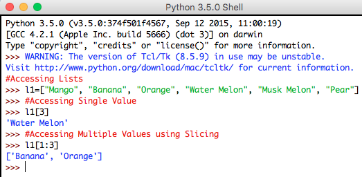 Python allows accessing values of a list using list indices i.e. list element index which starts from 0. Multiple elements of list can be accessed using slicing range of elements from the list.