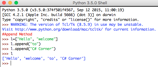 This method is used to append or add an element to a list. It consists of one parameter and it is explained as below: