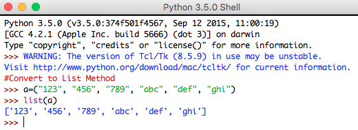 This method is used to convert a sequence/tuple to a list. It consists of one parameter and it is explained as below: