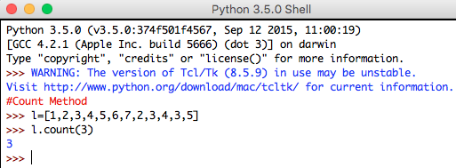 This method is used to count the number of occurrences of an element in the list. It consists of one parameter and it is explained as below: