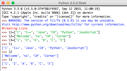 It is very easy to create a list in python, just enclose values between square brackets separated by commas.