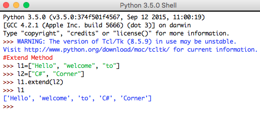 This method is used to extend existing list with sequence list provided as input. It consists of one parameter and it is explained as below: