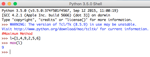 This method is used to determine maximum element in a list. It consists of one parameter and it is explained as below: