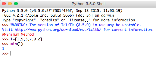 This method is used to determine minimum element in a list. It consists of one parameter and it is explained as below: