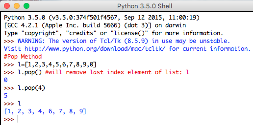 This method is used to remove and return last index element of the list. It consists of one parameter and it is explained as below: