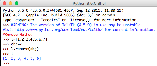 This method is used to remove element specified as input from the list. it consists of one parameter and it is explained as below: